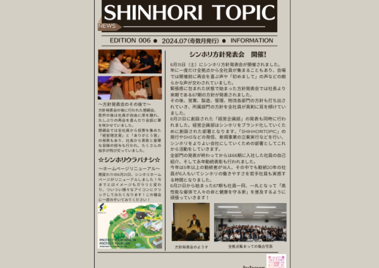 HOME > お知らせ > SHINHORITOPIC お知らせ SHINHORITOPIC新着情報イベントブログ RECOMMENDED NEWS SHINHORI TOPIC 9月号発行しました 2025.09.17SHINHORITOPIC SHINHORI TOPIC バックナンバー 2025.09.17SHINHORITOPIC SHINHORI TOPIC 7月号発行しました 2024.07.18SHINHORITOPIC